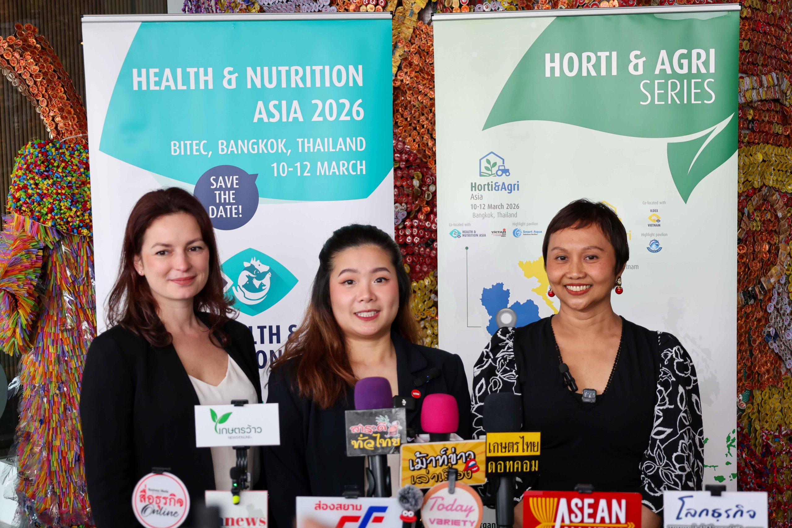 งาน Health & Nutrition Asia และ Horti & Agri Asia 2026 จัดขึ้นระหว่างวันที่ 10–12 มีนาคม 2569 ณ ศูนย์นิทรรศการและการประชุมไบเทค กรุงเทพฯ ผู้สนใจสามารถติดตามรายละเอียดและลงทะเบียนเข้าร่วมงานฟรีได้ที่ https://healthandnutrition.viv.net/ และ https://hortiandagriasia.com/ สอบถามโทร. 02-1116611 ต่อ 330-335